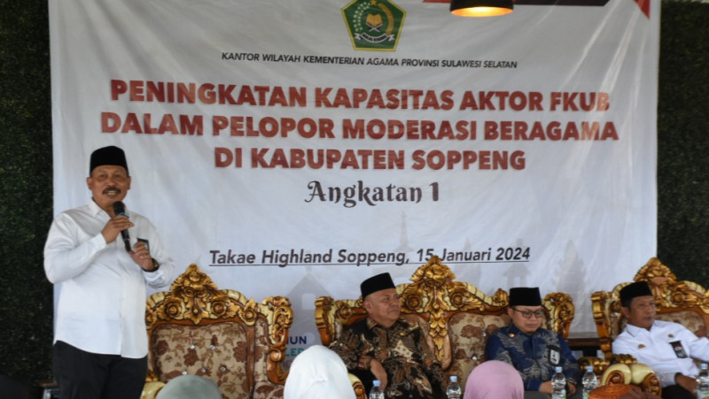 Hal itu disampaikan Ali Yafid ketika membuka kegiatan Peningkatan Kapasitas Aktor FKUB Dalam Pelopor Moderasi Beragama di Takae Highland Soppeng, Senin (15/01/24). Kegiatan itu dihadiri sejumlah tokoh Agama, tokoh pemuda, dan kelompok organisasi masyarakat.